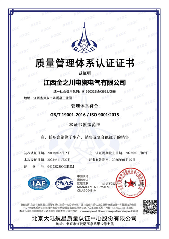 江西金之川電瓷電氣有限公司原名萍鄉(xiāng)市金川成套瓷廠,原屬獨資企業(yè),創(chuàng)建于2002年,系架空線路、電力電器用瓷絕緣子專業(yè)生產廠家。根據公司發(fā)展需要,于2017年改制成立了股份有限公司,公司通過多方考察最終落戶蘆溪縣工業(yè)園區(qū),于2019年整體搬遷至交通便利的江西省萍鄉(xiāng)市蘆溪縣工業(yè)產業(yè)園。公司現有占地面積35000平方米,生產廠房面積14000平方米,員工百余名,其中專業(yè)技術人員35人。公司具有完整的生產體系,并已通過ISO 9001:2015質量管理體系、ISO 14001:2015環(huán)境管理體系、ISO 45001:2018職業(yè)健康安全管理體系認證;能源管理體...